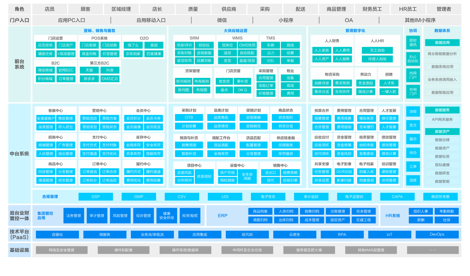 从前端门店到后端供应链、财务、生产等,天然的一体化平台,省去了多系统集成,快速高效