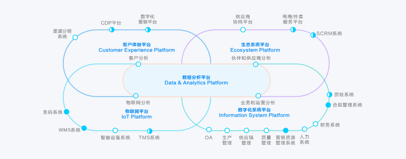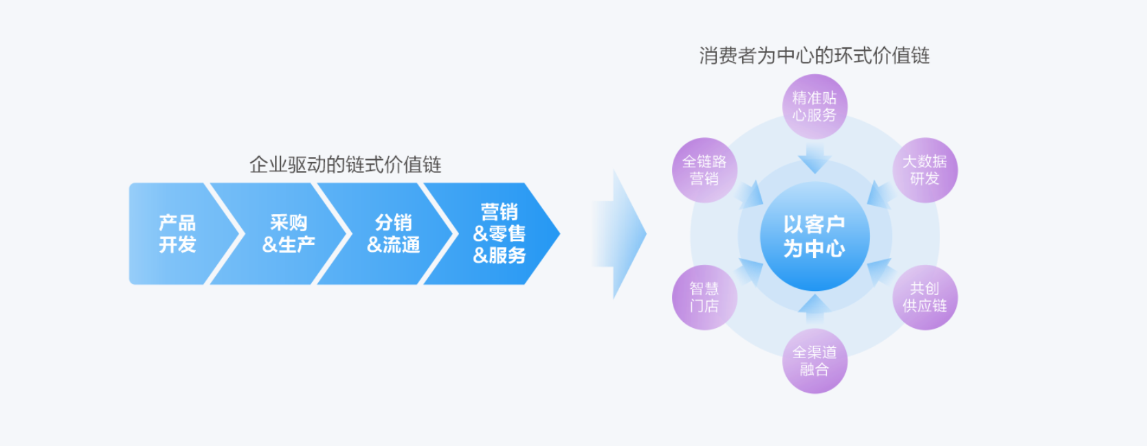 零售行业企业需要围绕消费者,通过全域营销体系来吸引、转化、培育、沉淀、裂变消费者,打造营销一体化;通过全域渠道体系来实现全网订单、全网配送、全网预测、全网供给,通过创造消费的极致体验,打造供需一体化;通过智慧供应来实现端到端的智能高效供应体系,形成供求一体化。通过全域营销、全域渠道、智慧供应强化企业与客户之间的关系,提升商品与现金的周转
