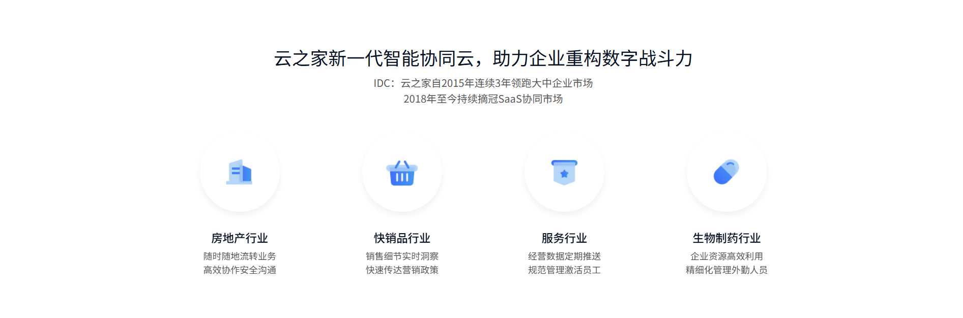 IDC:云之家自2015年连续3年领跑大中企业市场;2018年至今持续摘冠SaaS协同市场