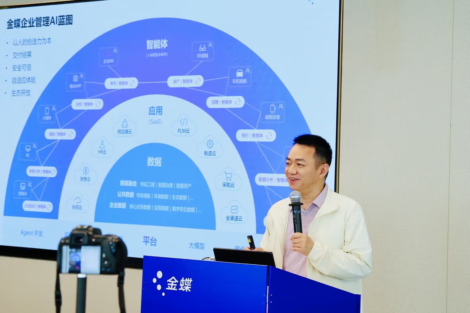 活动伊始,金蝶深圳区生态业务总经理 刘瑞元先生登台致欢迎词。刘总指出,AI技术的深度普及,正在打破传统管理边界,让决策更精准、协同更高效、运营更智能。面对数字化浪潮,企业唯有主动拥抱AI、深耕学习,才能在变局中行稳致远。金蝶也将持续以技术赋能企业,与各界伙伴携手,共筑数智化管理新生态。
